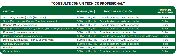 BIO Ca-B-Zn: Se utiliza en la formación de clorofila y algunos carbohidratos y en la conversión de almidones en azúcares. El zinc ayuda a procesos como la división celular y la síntesis de auxinas en flores y brotes, especialmente durante la floración. La eficiencia del boro se expresa en los puntos de crecimiento de las raíces y el follaje