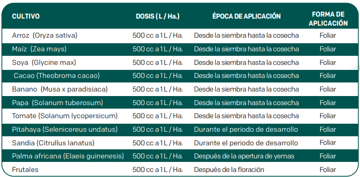 No presenta incompatibilidad con la mayoría de productos de uso agrícola más frecuentemente utilizados. Es recomendable realizar una prueba de compatibilidad antes de realizar una aplicación.