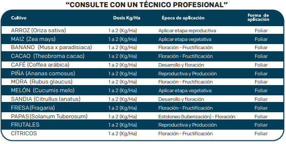 Para uso en varios cultivos, como corrector carencial de macroelementos vía foliar o radicular.