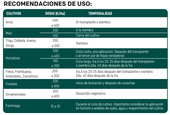 Las recomendaciones para la aplicación y almacenamiento del producto, se utilizarán solo como una guÃa. AGRITEC garantiza productos de alta calidad, sin embargo renunciamos a cualquier responsabilidad por daÃ&